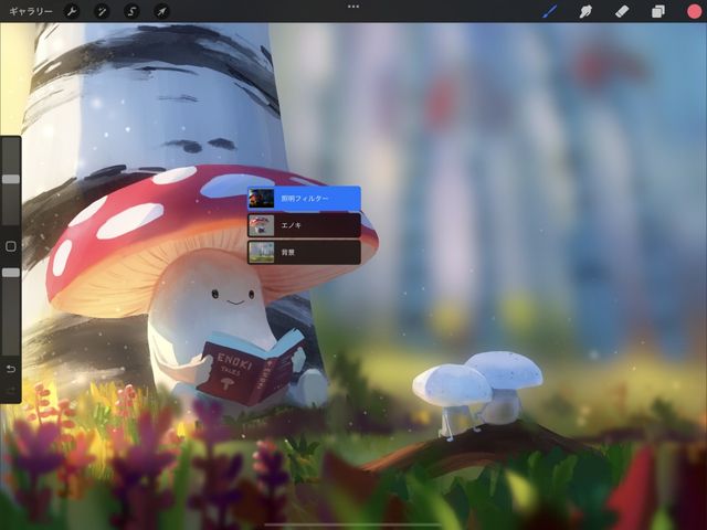 「レイヤーを選択」では、タッチを使用してキャンバスの特定の領域に含まれる関連するすべてのレイヤーを表示できます。