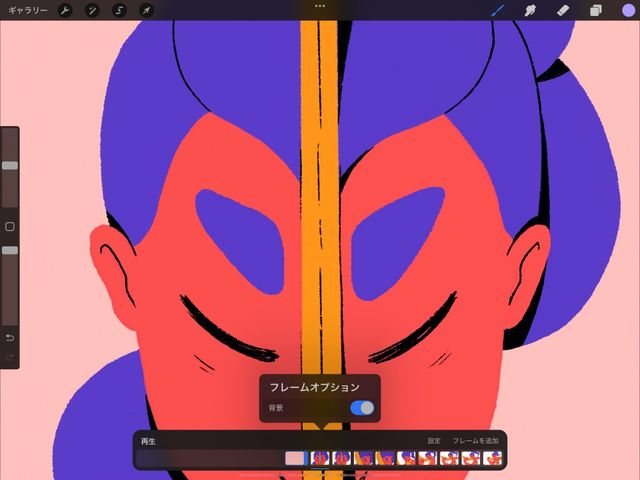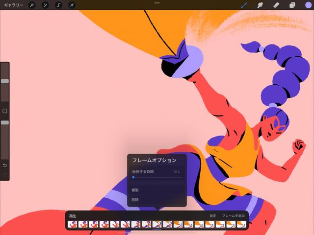 タイムラインのフレームをタップして選択し、もう一度タップすると、“フレームオプション” メニューが表示されます。