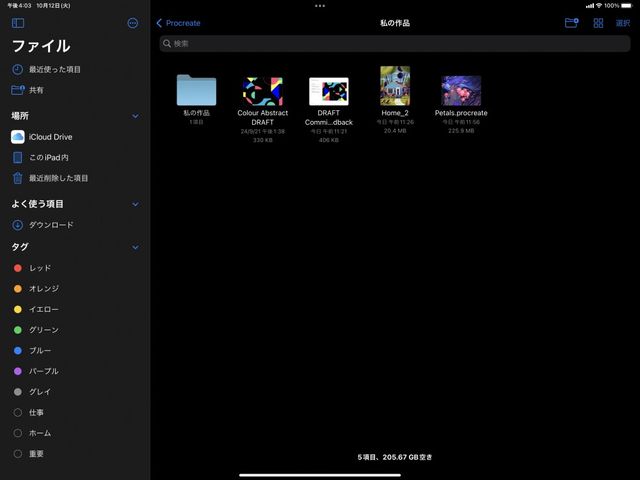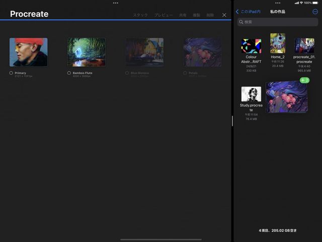 選択するファイルを押さえてつかみ、Procreate にドラッグします。