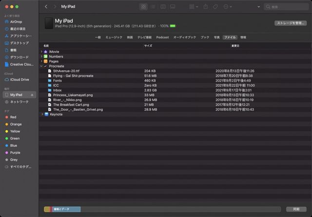 macOS では Catalina へのシステムアップデートをもって iTunes が廃止されました。ただし、Catalina より前の macOS を実行している場合は、Procreate のファイルを iTunes に保存できます。iTunes へのファイルの保存方法については、Apple の Web サイトをご覧ください。