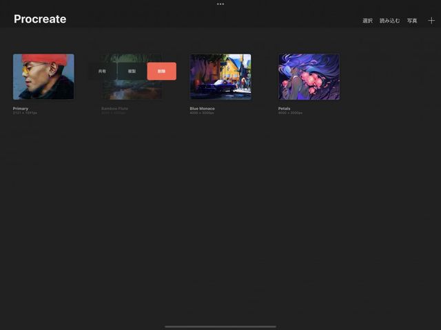 アートワークを Procreate の外にドラッグして他のアプリにドロップすると、アートワークを書き出すことができます。