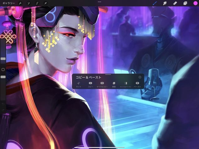 Procreate と Apple Pencil があれば、絵を描くのに指が不要になります。1 本指タップにショートカット QuickMenu を割り当て、空いた指を QuickMenu の呼び出しに使用しましょう。このようなタップやその他のマルチタッチショートカットは、 ジェスチャコントロール で変更できます。