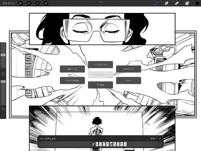 QuickMenu には “ページアシスト” でワークフローをスピードアップするのに役立つ 3 つのオプションが用意されています。