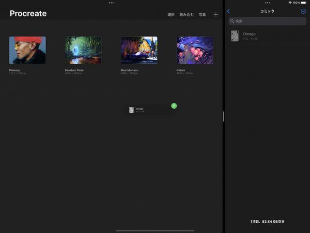 注意: 複数の PDF ファイルを Procreate に読み込むと、それらのファイルはギャラリーに保存されますが、自動的には開きません。読み込み時に既に Procreate のドキュメントを開いている場合も、そのファイルは自動的に開きません。