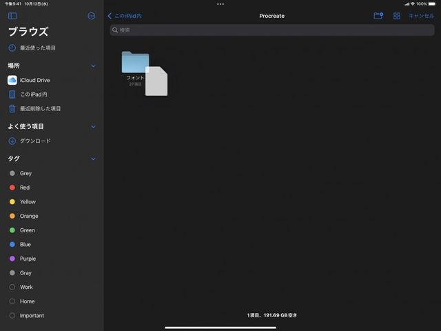 iPad の “ファイル” から Procreate にフォントをドラッグします。