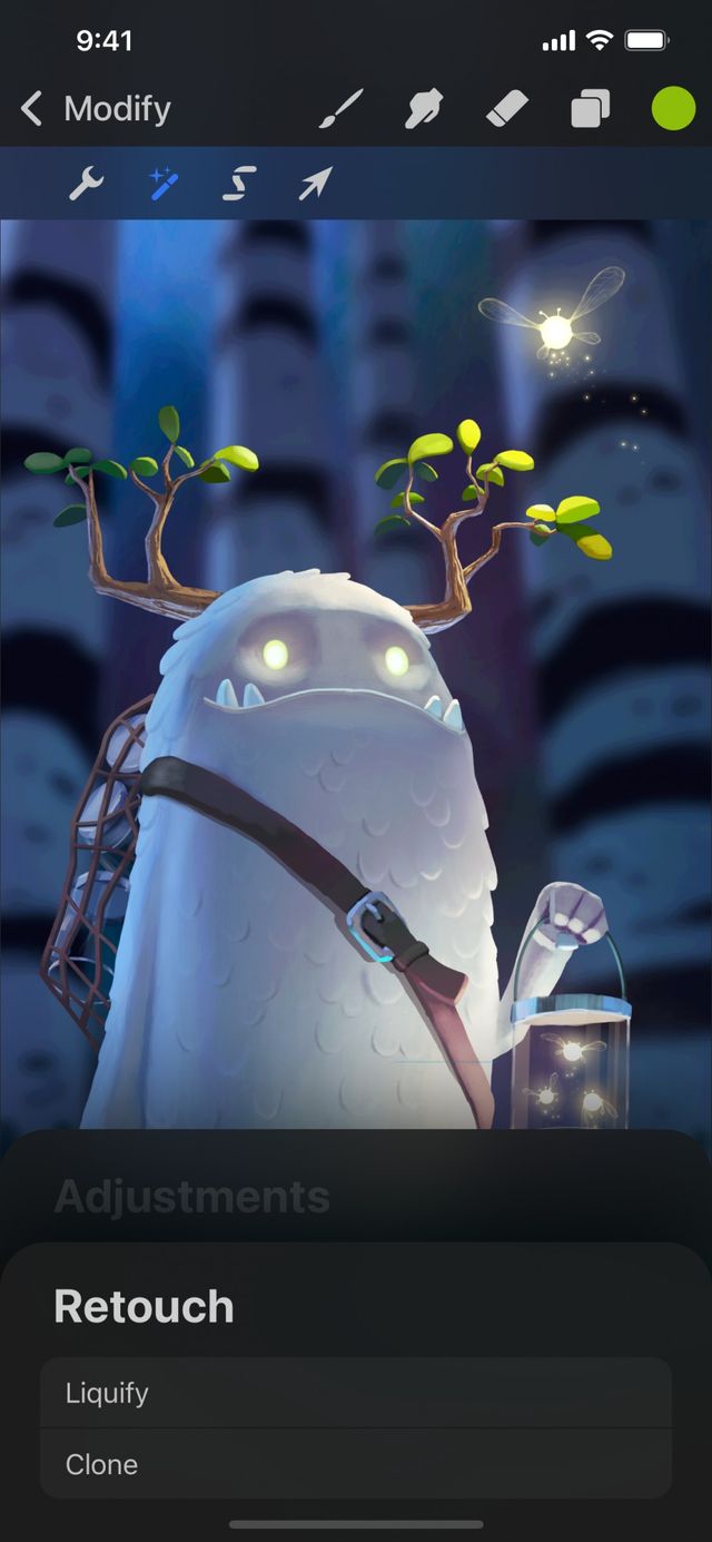 Tap Modify > Adjustments > Retouch > Clone to enter the Clone interface.