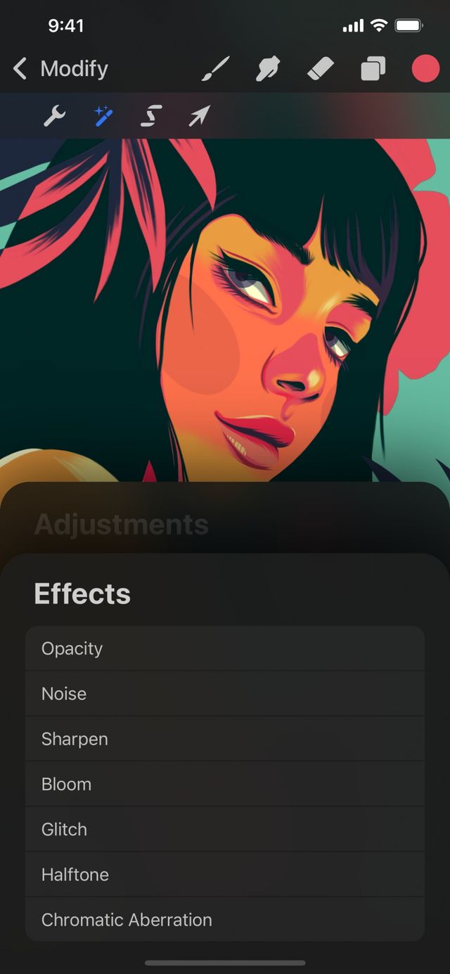 To commit your changes and leave Adjustments, Tap the Adjustments icon again.