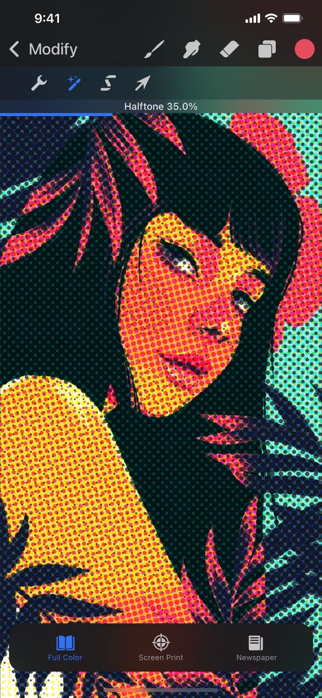 Choose between your halftone appearing as Full Color, Screen Print or Newspaper.
