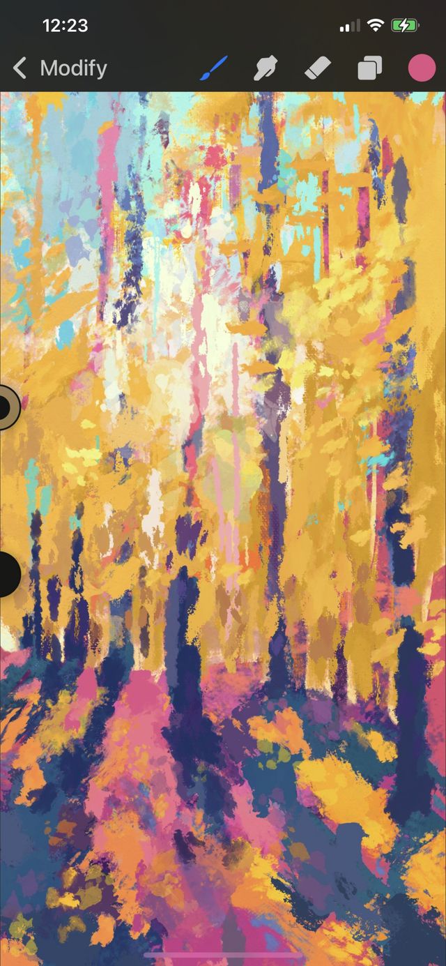 Smudge shares the same Brush Library as Paint. Experiment with different brushes to blend with each brush's unique characteristics. These can have interesting and unexpected results.