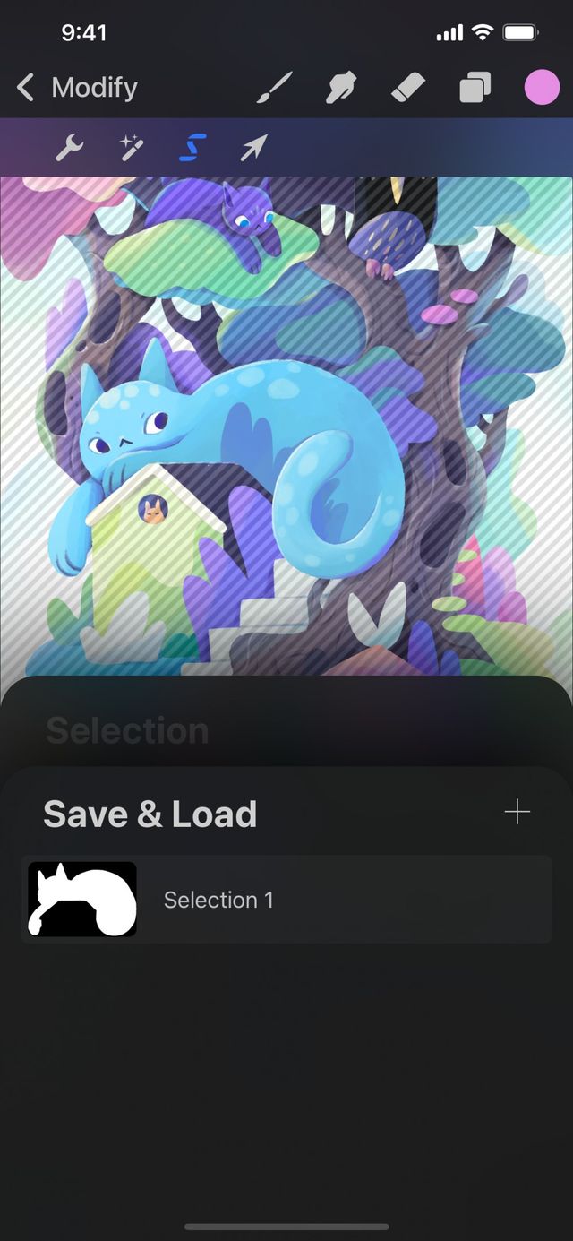 Tap Save & Load, then tap a previously saved selection in the list to reload it. You can now make further modifications to the selection if necessary.