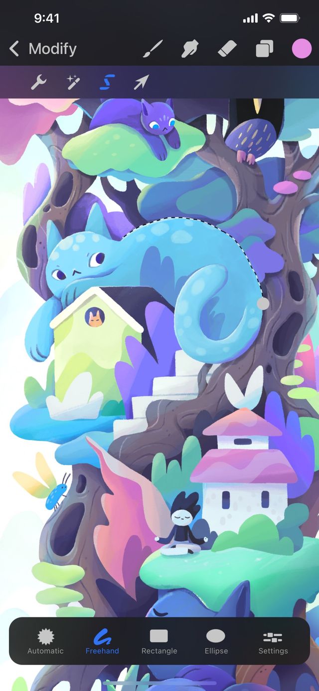 To cancel your selection and exit back to your artwork, tap the Selection button again.