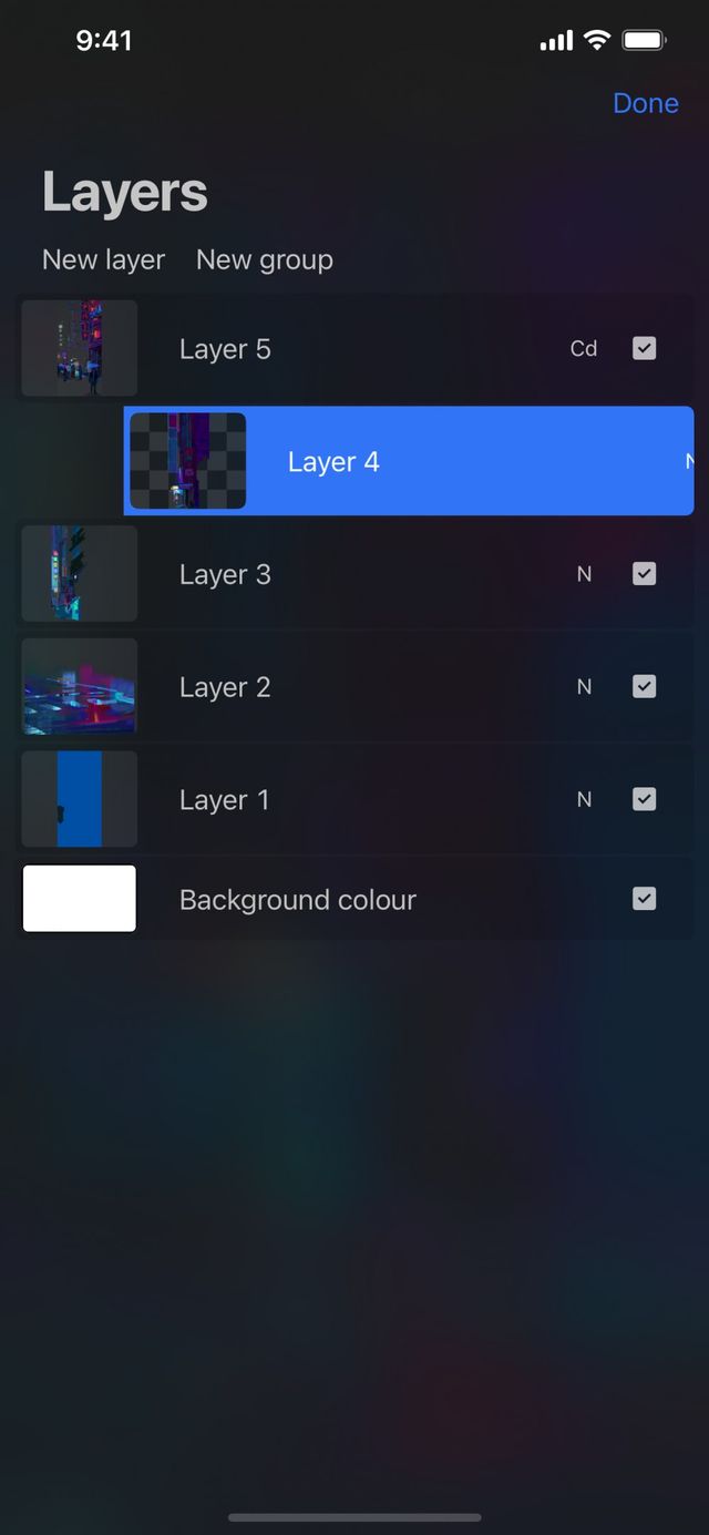On the Layers panel, swipe right on any layer to add it to your selection as a Secondary layer. Secondary layers appear as dark blue.
