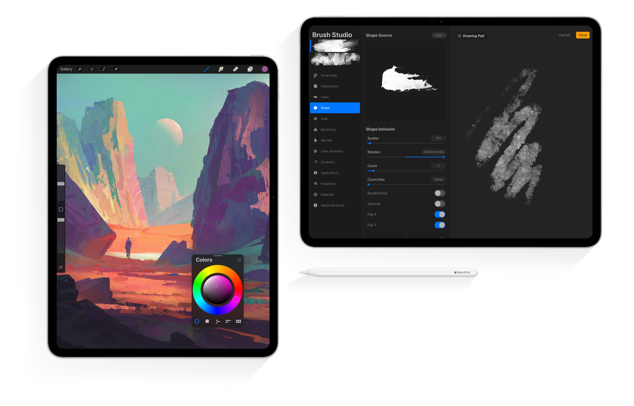 Perfect your line work, import custom brushes, or even create your own with Procreate's powerful Brush Studio.