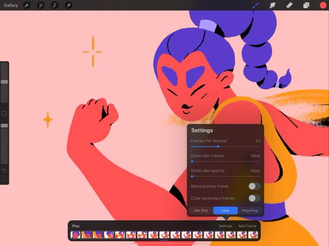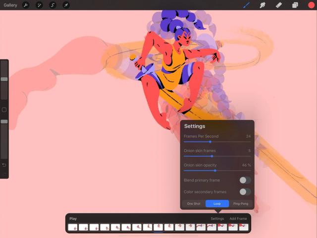 The onion-skinning function in Procreate gives you the same ability to see a ghostly overview of the animation surrounding your current frame.