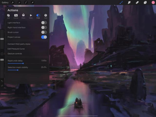 Tap Actions > Prefs > Project canvas to project your work onto a second screen.