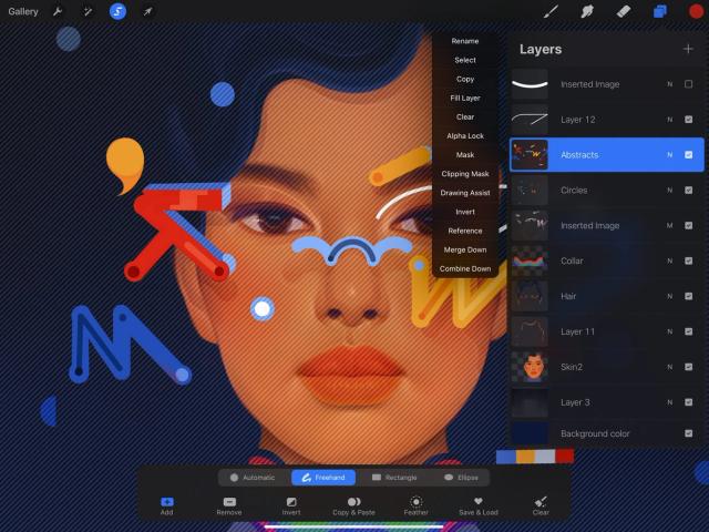 This will select any painted pixels from that layer, automatically invoking Selection mode and committing the selection so you can paint straight away. You’ll see areas outside the selection marked by moving diagonal lines.To adjust the selection, tap and hold the Selection button to reload the mask and access the Selection toolbar.