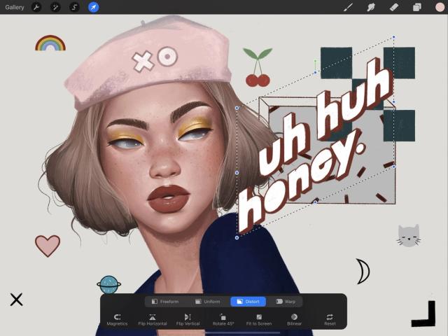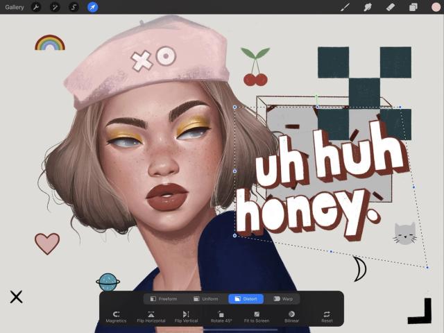 Tap the Distort button in the Transform toolbar, then drag any corner node to begin your transformation.