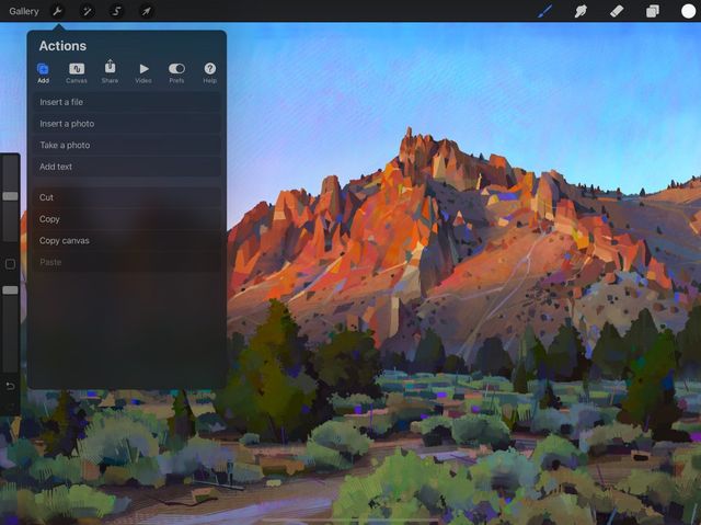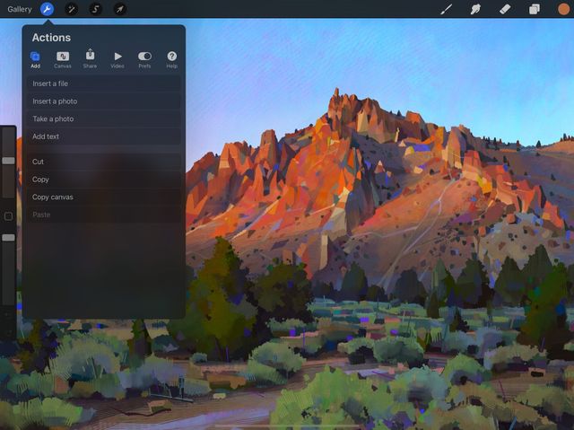 To bring a JPEG, PNG or PSD image from your Photos app into your canvas, tap Actions > Add > Insert a photo. Your Photos app will pop up. Scroll through your folders to find photos you’ve taken and images you’ve saved to your iPad.