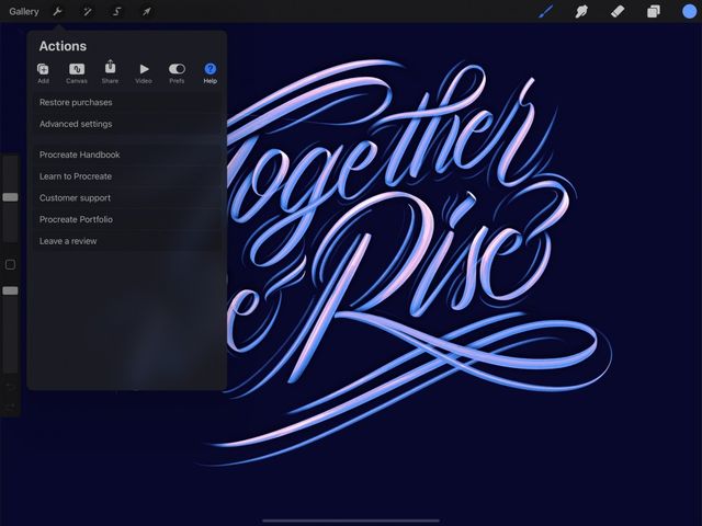 To explore the playlist of tutorials, tap Actions > Help > Learn to Procreate.