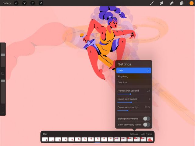 To set the number of frames shown in onion-skinning, drag the Onion skin frames slider. You can set onion-skinning to None, showing only your current frame. Or, you can push it up to a maximum of 12 surrounding frames.