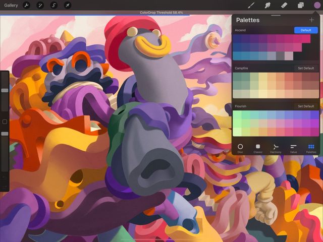 Procreate offers many ways to explore and select new colors.