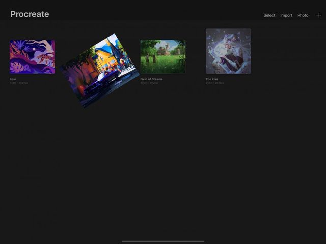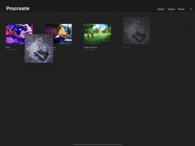 Tap the Select button to enter multiple selection mode. Tap canvases to select them. Selected artworks display a blue tick.
