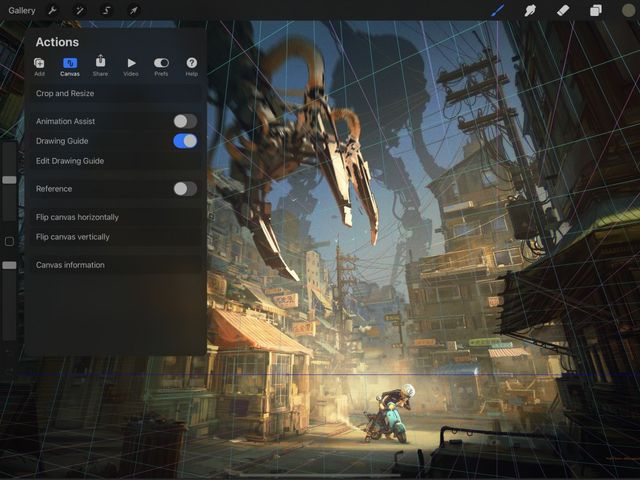 In Actions > Canvas, tap Edit Drawing Guide. This will take you to the Drawing Guides screen.