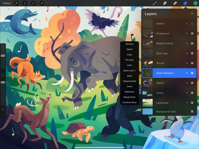 Alpha Lock is ideal for adding texture, detail, or shading to an element of your artwork without painting outside the lines.
