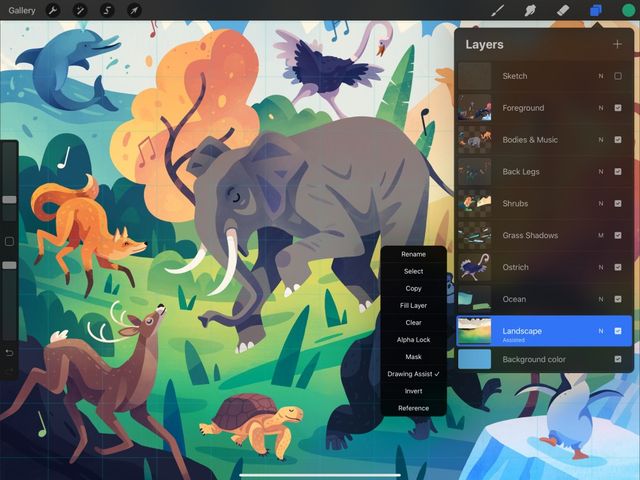 In the Layers panel, tap a layer to bring up Layer Options, then tap Drawing Assist.