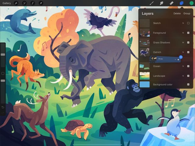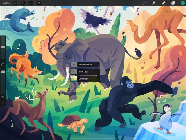 Layer Select uses touch to display all the layers associated within a specific area of the canvas. This extremely useful shortcut saves you needing to constantly access the Layers panel.