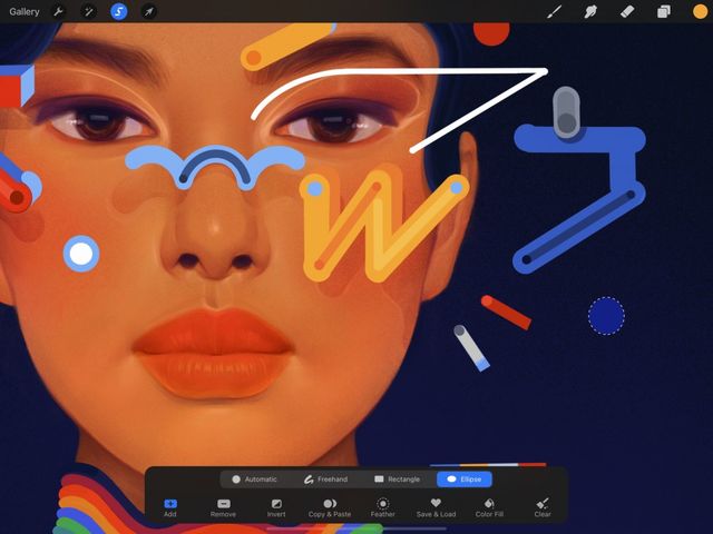 Craft more complex selections by creating multiple ellipses, rectangles, or both. Tap Add to combine them into a single selection. Or, mix and match selection modes freely. Start with an Ellipse selection, and hand-draw additions to it using Freehand.