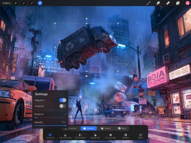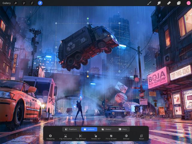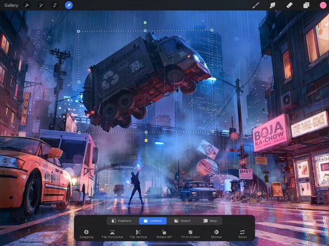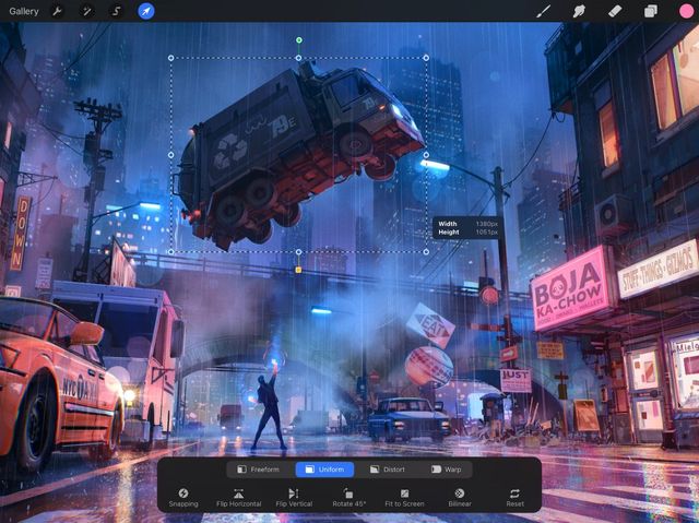 Uniform Transform swiftly moves, scales, and rotates your layers. Uniform Transform does this while perfectly preserving your original image proportions.