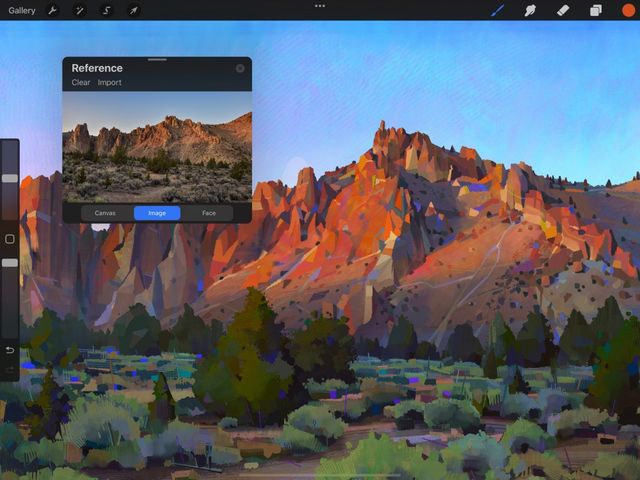 Many artists use an image or photo on their canvas as reference while they work. The Image button allows you to import an image from the Photos app to use as a Reference Image instead.