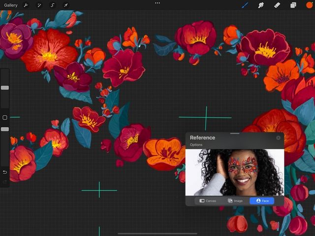 You can also activate FacePaint by tapping Actions > Canvas > Reference toggle to open the Reference Companion. Tap the Face button on the Reference Companion window. You will a see video captured from your iPad’s front facing camera in the Reference Companion window.