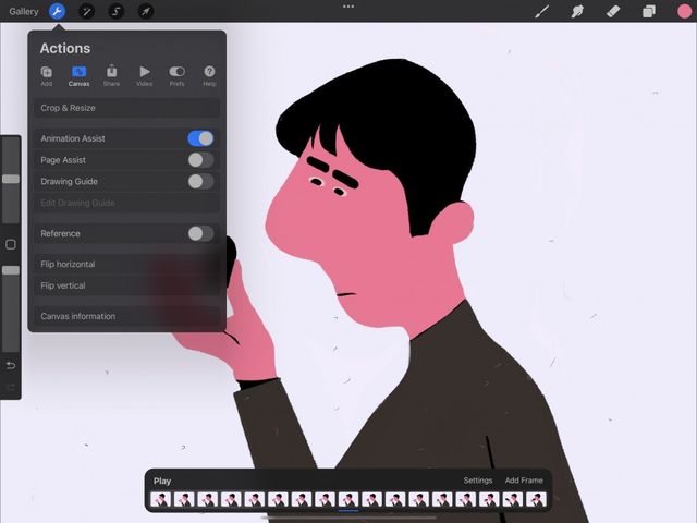 Tap the wrench button in the top left of the screen to open the Actions menu. Tap Canvas, and flip the Animation Assist switch.