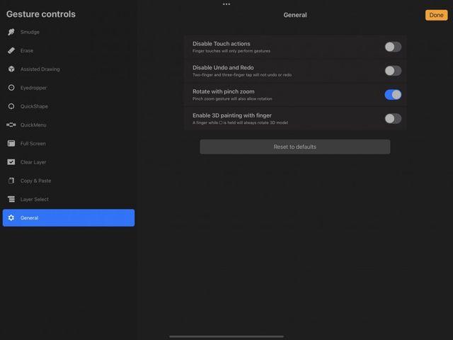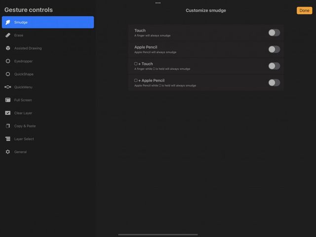 When you’ve finished with the Gesture Control panel, tap Done to return to your canvas.