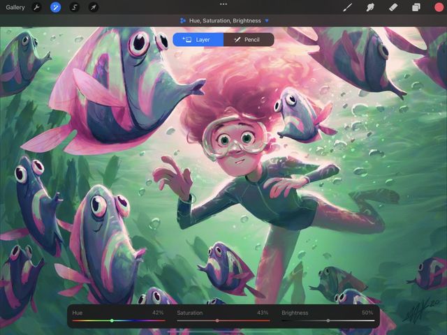 Take your art to the next level with industry-standard color adjustment tools. Adjust Hue, Saturation and Brightness or expertly tweak your Color Balance. Experiment with Curves over a helpful histogram, and Recolor parts of your image with ease.