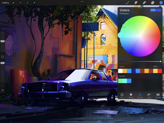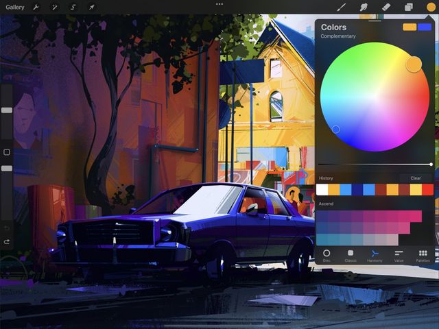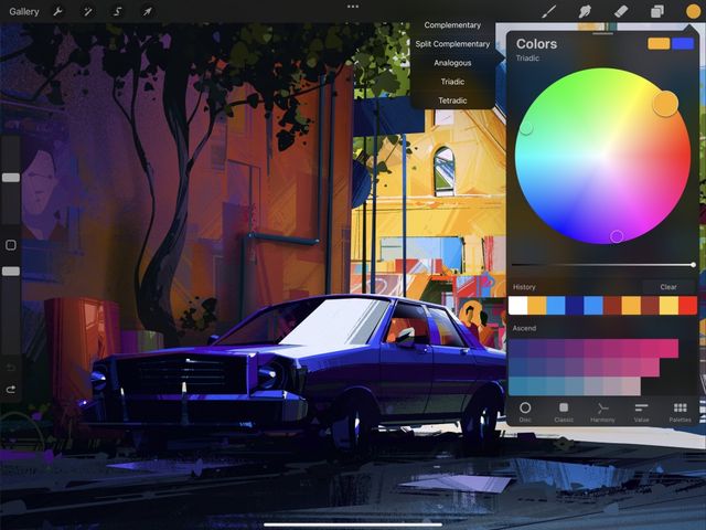 Supercharge your art with the power of color theory. Harmony builds instant color schemes based on your color choices. These can be Complementary, Split Complementary, Analogous, Triadic, or Tetradic.
