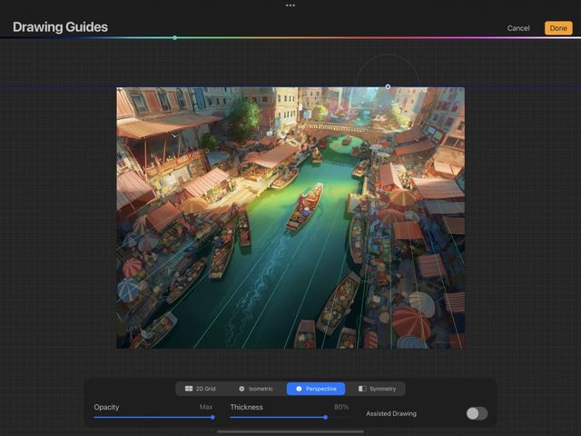 Perspective Guides offer adjustable vanishing points. Use these to construct realistic objects and backgrounds in your artwork.