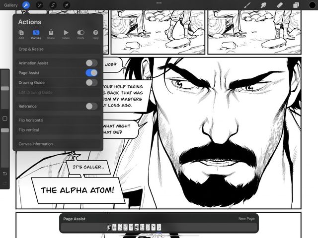 In an open document or artwork, tap the wrench button in the top left of the screen to open the Actions menu. Tap Canvas, and tap the Page Assist toggle switch.