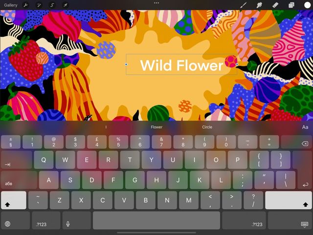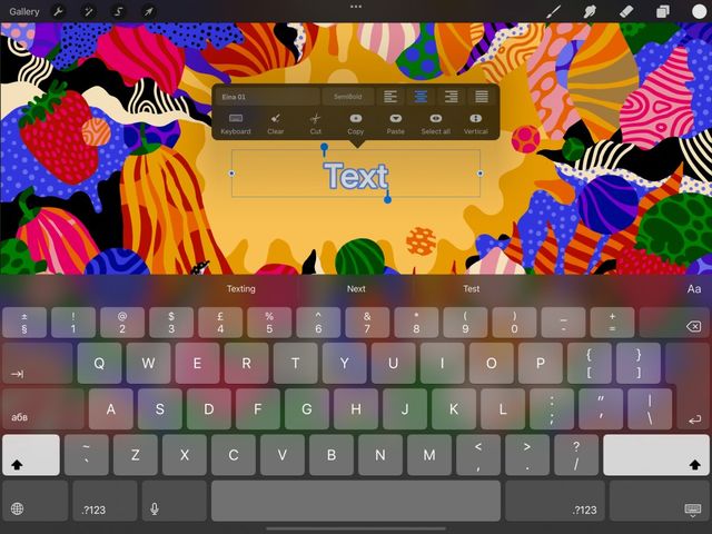 When you add new Text to your canvas, the word Text is already highlighted and ready to type over. You can use the iOS Keyboard to type or Apple Pencil to Scribble in new text.