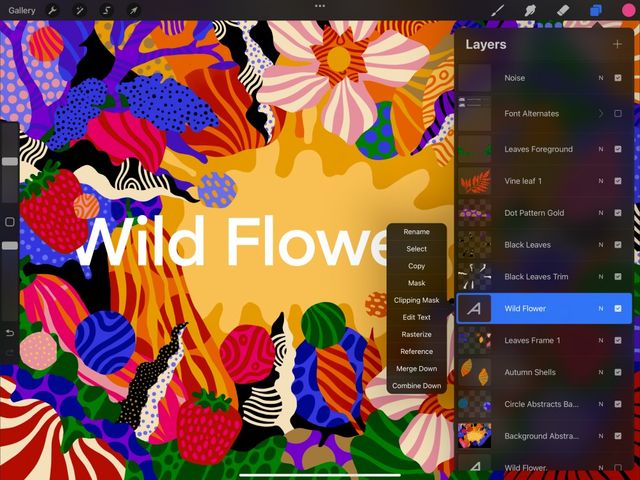 To use certain Procreate tools, you must rasterize your Text. Rasterizing turns text into pixel data that you can paint, distort, merge and more.