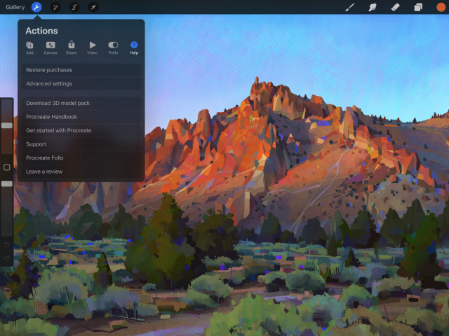 To join Procreate’s art community and build your online portfolio, tap Actions > Help > Procreate Folio.