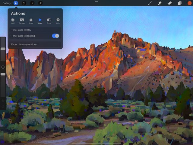 Time-lapse video records every step of the creation of your image. This then compiles it into a high-speed video replay you can export and share.
