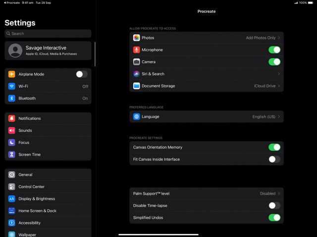 To switch recording off across all artworks, tap Help > Advanced Settings. This switches out of Procreate to iPad Settings > Procreate menu. Toggle the Disable Time-lapse switch on to stop recording Time-lapse on your existing or new artworks. Prior time-lapse recordings will be retained.
