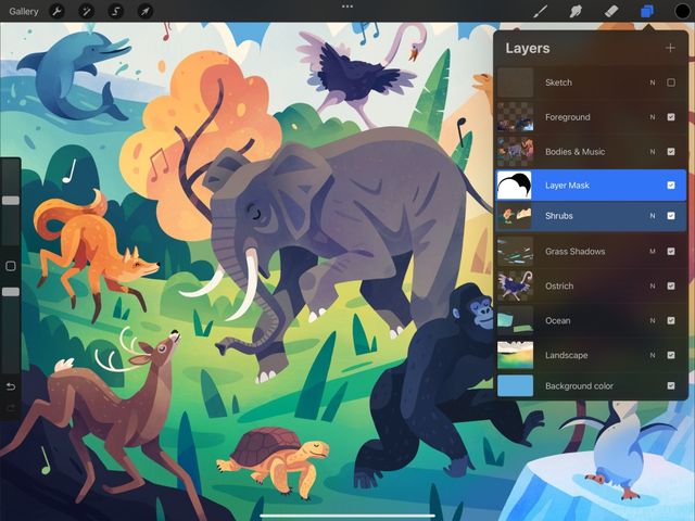 In the Layers panel, tap a layer to bring up Layer Options, then tap Mask.