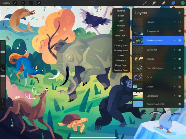 As a shortcut, you can swipe a layer left-to-right with two fingers to activate Alpha Lock.