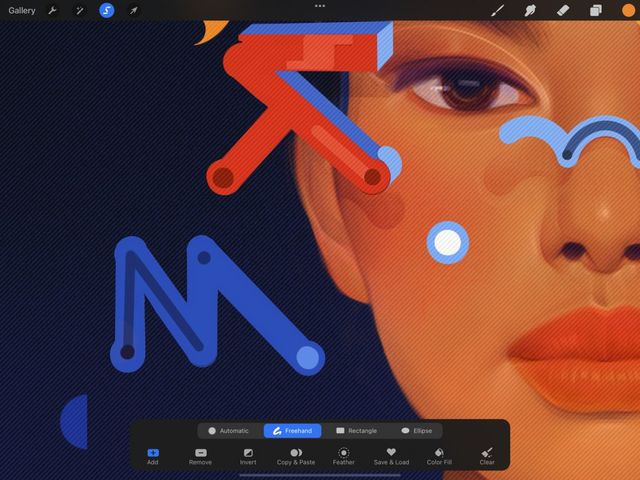 Freehand mode lets you hand-draw your selection by drawing a fluid line, or, tap to create a polygonal line. You can combine both approaches for quick and accurate selections.