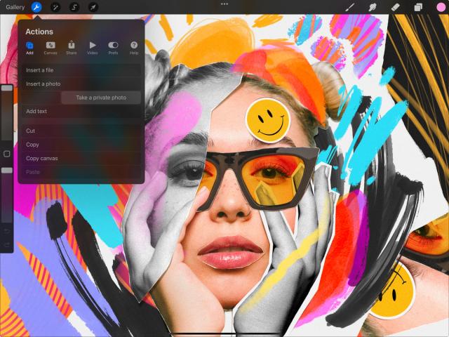To bring a JPEG, PNG or PSD image from your Photos app into your Canvas. Tap Actions > Add and then slide the Insert a Photo tab to the left until it reveals a grey Insert a private photo button. Tap to open your Photos app and select a photo you’ve taken or images you’ve saved to your iPad.