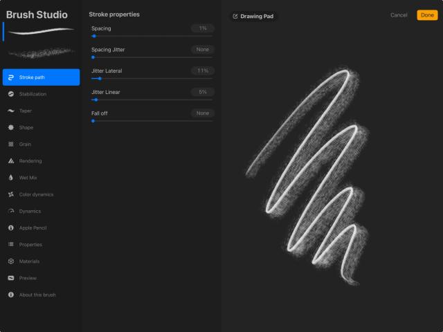 Create almost limitless new brushstroke effects by combining two individual Procreate brushes. This transformative feature uses each brush's editable shape and grain to create a unique new brush.